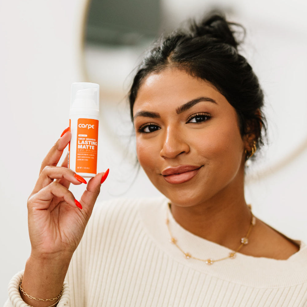 - EASY TO USE: Squeeze a dime-sized drop of Carpe onto fingers and rub into forehead, cheeks, nose, and any other areas of the face where you want to minimize sweat and shine. Enjoy broad-spectrum UVA/UVB protection!