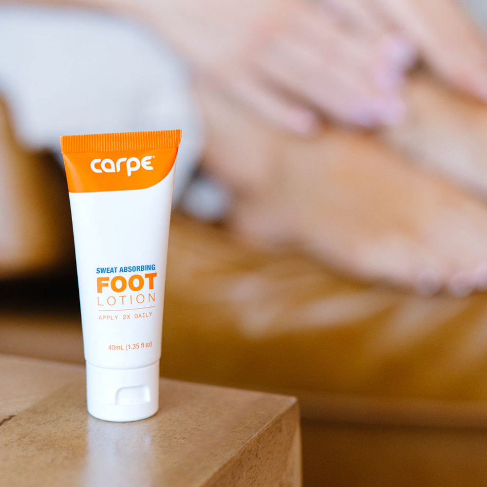 - EASY-TO-USE: With a dime-sized amount of Carpe’s Sweat Absorbing Foot Lotion you can reduce sweat without side effects. Apply every night and morning for best results, and say goodbye to your sweaty, stinky feet.